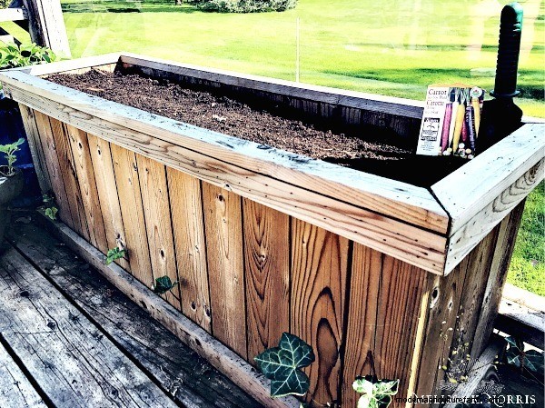 This year we are growing our carrots in our cedar planter box on our balcony as we’ve been battling an almost indestructible soil-borne pest called wireworms that especially love burrowing into roots veggies and destroying them from the inside out. By growing our carrots in a planter box on our deck, high up off of the ground, we pretty much eliminate the risk of wireworms destroying our carrot crop this year.