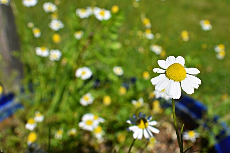 German chamomile is also prolific and, although it’s an annual, it self seeds. Plus it grows tall, whereas Roman chamomile grows low to the ground, which makes German chamomile easier and more abundant to harvest from. The biggest drawback to growing chamomile for tea is that you need a lot of those tiny flowers to make any significant amount of dried tea!