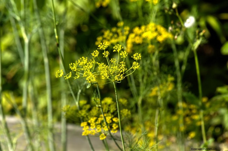 Allow the fennel plant to go to seed in the fall. It will produce little yellow flowers that, again, look similar to dill. Harvest the seeds once the flowers dry out and begin to turn brown. Remove flower heads from plants and allow them to dry out completely on a tray in a sheltered area out of the sun. Most seeds will drop off the flower heads on their own, but can gently shake any that haven’t or rub them to remove them.