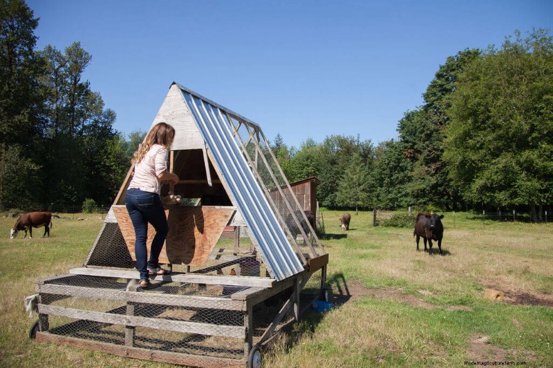I used to let my chickens free-range on our property, but we have many predators such as eagles, cougars, coyotes, bears, etc. and I lost one too many chickens that we now utilize a chicken tractor. This allows them to freely scratch and peck for food, but keeps them safe from wild animals.