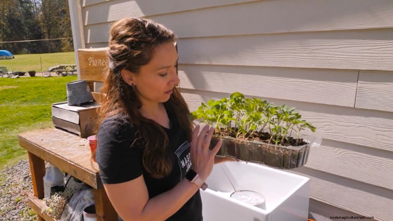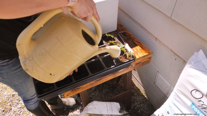 I will actually water my plants as I go along, instead of waiting until I've potted up an entire tray. After this initial watering, I will switch from spraying and watering overhead to bottom watering. I do this to avoid any fungus from growing on my plants and to promote a deeper root system.