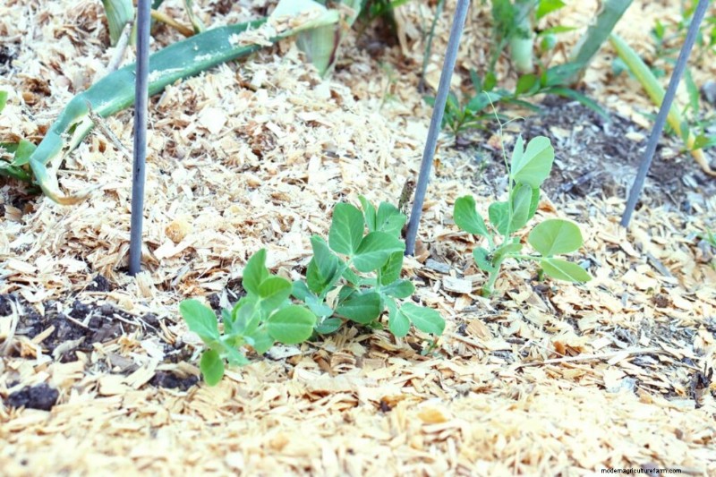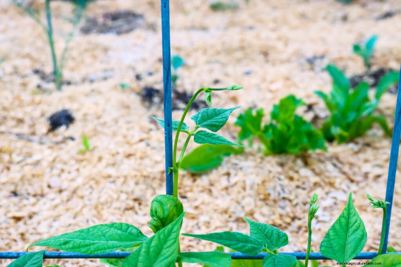Wait until your crops are established before adding wood chips as mulch up and around the plants.