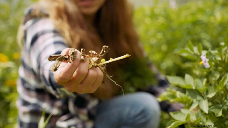 If you pull up a potato plant and notice the potatoes all look very immature and small, this is a sign it's blight.