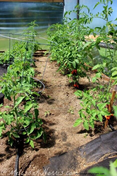 One tip is to be sure and stake your crops at the time of planting (this is most ideal for indeterminate tomato plants that like to grow very tall), if you stake them after they've grown you risk damaging their roots. (Read this post for my 10 tomato growing tips for a disease-free harvest and here on how to prune tomatoes for a better harvest.)