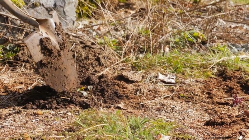 To do this I take a square, flat-headed shovel and simply cut straight down through the soil to sever any grass roots. I then dig up the top layer of soil and remove it, then amend and fill in the space with compost and mulch.