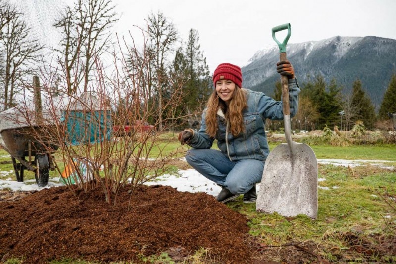 Because the fungus that causes mummy berry disease actually comes from a tiny mushroom that grows during the first part of spring (and develops where the mummified berry falls), we need to prevent these mushrooms from growing at all.