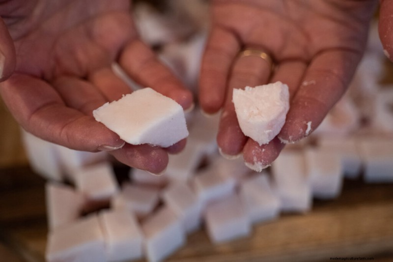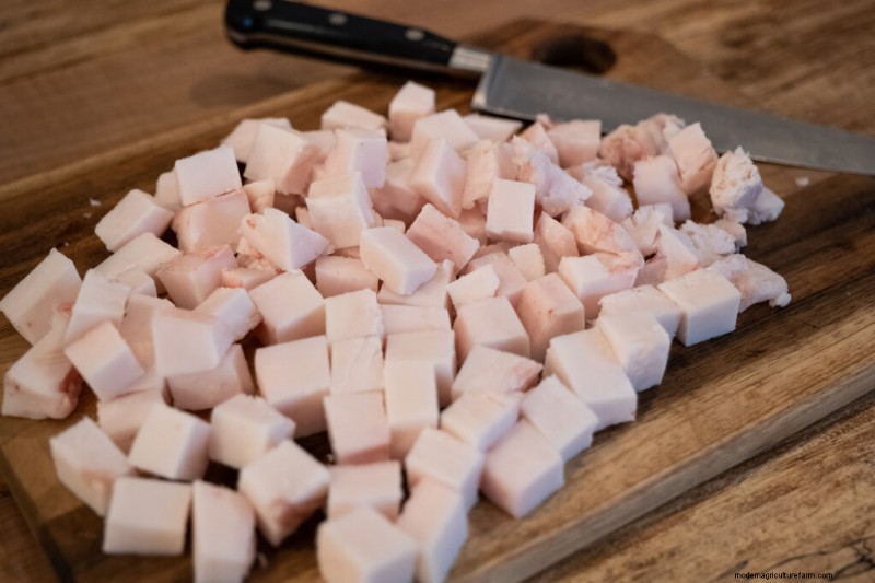 - Chop the lard into 1-2 inch cubes. Try to keep all pieces uniform in size.
