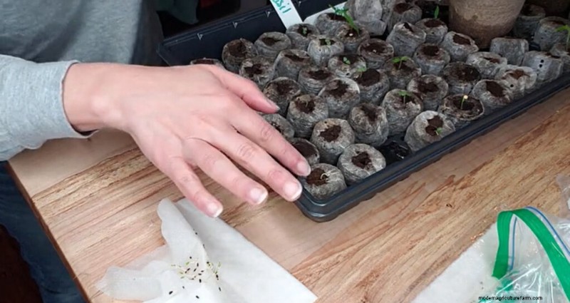 Simply take one of the germinated seeds and place it into your prepared seed starting soil and continue as you would with seeds you started indoors by direct sowing.