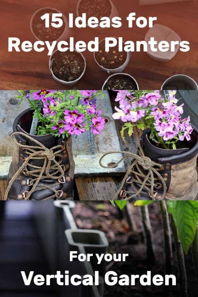 Some of the most popular recycled items used for planters in a vertical garden are:
