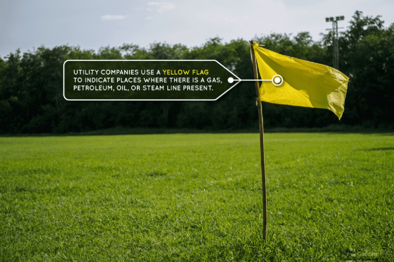 So, if you see a yellow flag or paint, then you know that someone is working on a digging project, and there are underground facilities with gas, oil, steam, or other gaseous materials under the marking.