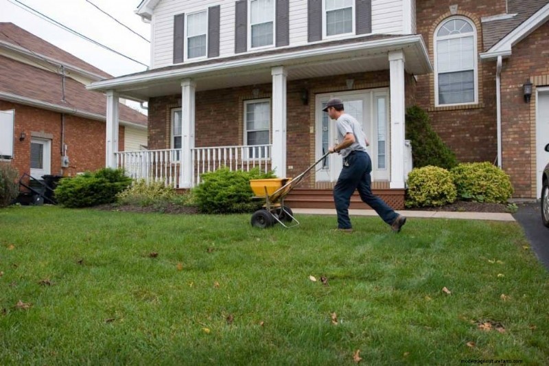 - Apply fertilizer to the middle of the lawn, going back and forth across all areas in a straight line, similar to that of a mowing pattern. Slightly overlap with each pass, taking caution not to lay too much product.