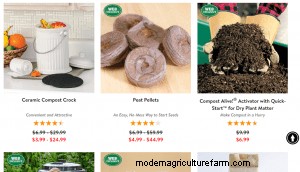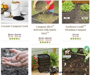 Gardener's Supply Center has pretty much everything you could need for a garden. They list any promotions you would need to know about at the very top of their page to help you save money, and provide you with any codes you would need to enter at the checkout phase. They care about their customers! https://www.gardeners.com/search?q=compost&simplesearch=submit#q=compost