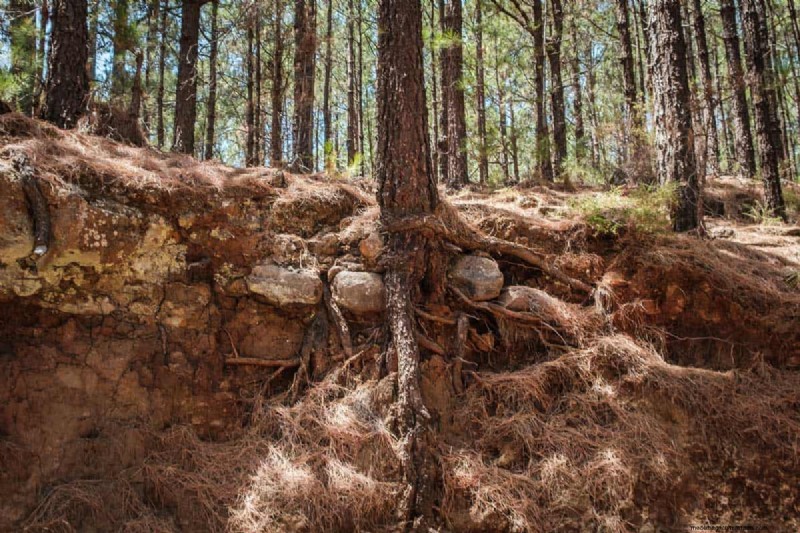 So, if your pine tree has access to a healthy amount of water, has a root system that is well oxygenated, and exists in soil that's loose enough to allow for root growth, then you may be dealing with foot systems to grow to six meters deep. Comparatively, poor growing conditions will stunt root growth. If, for example, your pine tree is growing in clay soil, you won't have to worry about the tree's root system becoming so extensive.