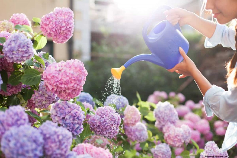 Hydrangeas are beautiful, round flowers with colors that range from pink, purple, lavender, and blue. Its Latin word is the same as its name: Hydrangeas. The best time to plant these is in the fall or earlier in the spring. You can plant them in places that get lots of sun but do not get too hot. They do not like the afternoon sun. This may be on the north or south side of your home.