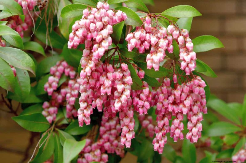This plant is originally from Japan. Its Latin name is Pieris Japonica. Its branches are long and flowery, hanging down in a drooping fashion. Its colors range from red, to pink, to a bright white. The best zones for these plants are 5-9. These plants love to be on their own, so plant them 6 to 7 feet apart from one another. Because of how far they prefer to be from one another, they can grow to be extremely tall--nearly 10 feet.