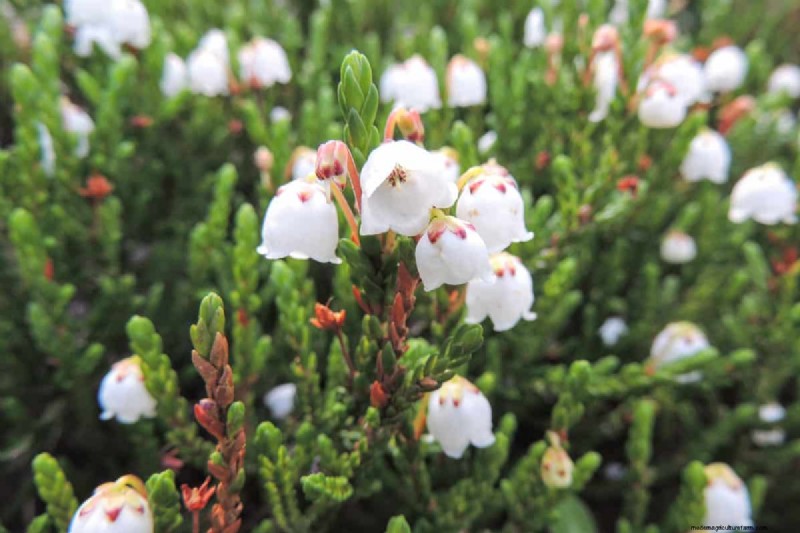 Mountain Heathers (Cassiope) are typically purple-colored flowers found on hilly/mountainous landscape. They spread across areas rather quickly and often reside in large portions of some areas. Most of them bloom in the summer, and should be planted in zones 4 through 6. These plants can grow to be a little over a foot tall, so for the most part they stay relatively small.