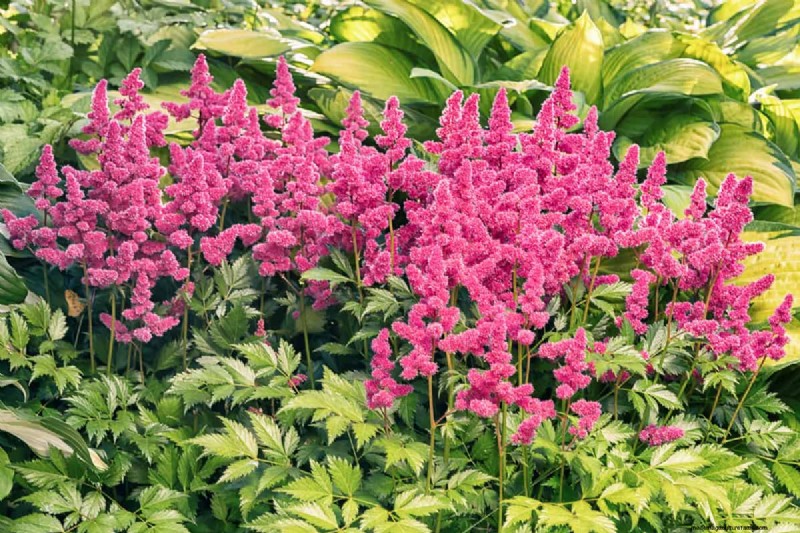 The Asilbe is also known as the False Goat's Beard because of its appearance. It's tall, thin clusters of foliage give it its unique look. You can find Astilbe in pink, white, red, purple, and more. Another reason they are popular is their ability to grow in shady areas. A lot of sun is not required, as this is where they love to be. Watering them a lot, less often, is the best way to keep them hydrated. Astilbe does well in zone 3-8.