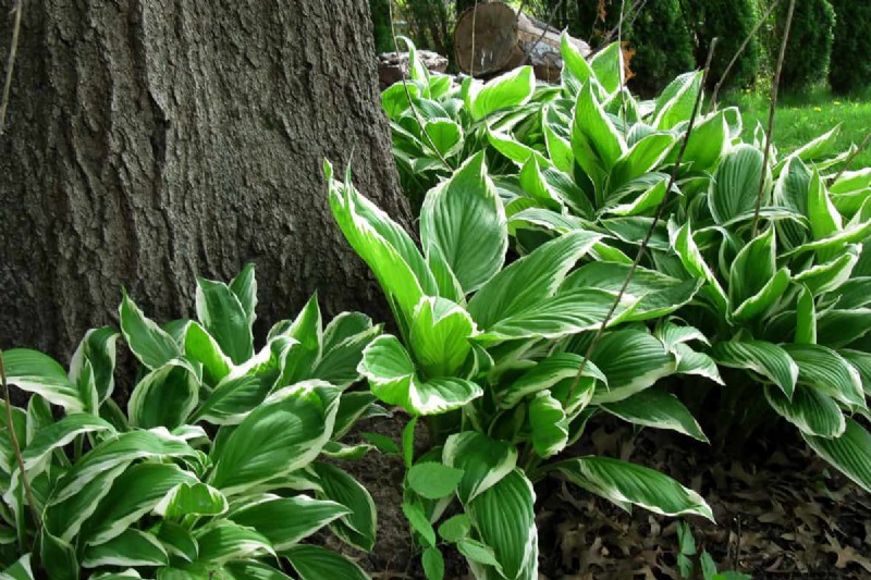 Hostas (Plantain lilies) are large-leafed plants that look similar to elephant ears which live in zones 9 and 10. While their primary color is green, they can be other colors such a blue. They also can have patterns of white and other colors in them and can bloom flowers that look similar to honeysuckles. Be sure to give them an average amount of water on top of sun and shade throughout the day.