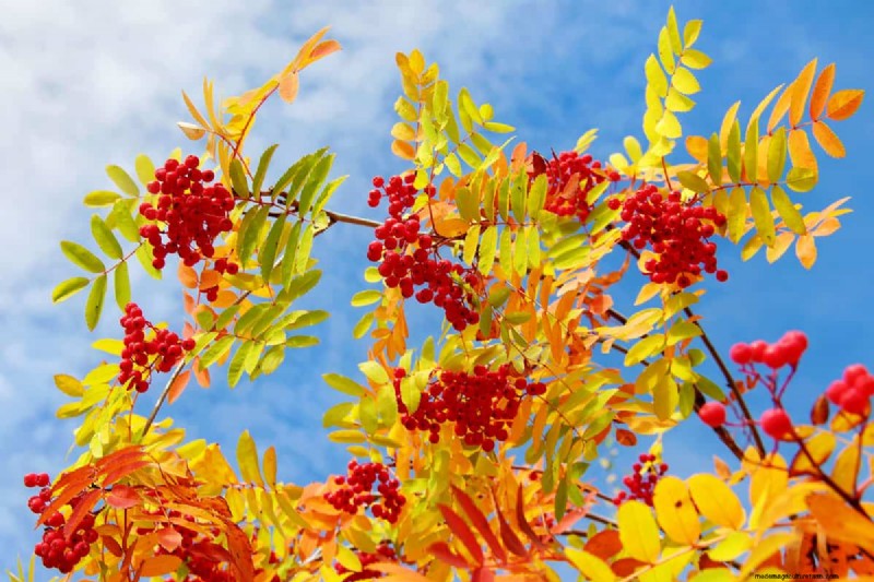 Mountain Ash (Sorbus) is more commonly known as Rowan. These plants are medium-sized trees that grow bushels of red berries. These berries are not meant for humans. They are poisonous. Consuming these berries can cause vomiting, diarrhea, headaches, or worse. Mountain Ash trees grow best in partial sun with plenty of water in zones 3 through 5.