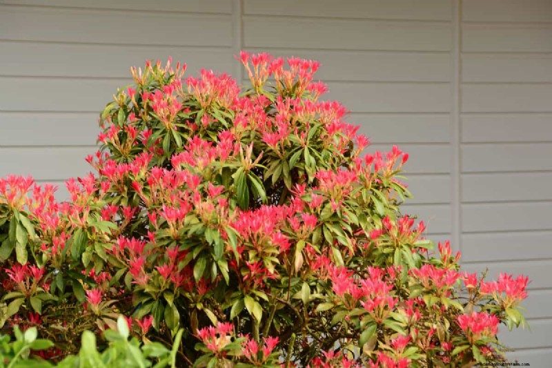 Pieris plants grow very uniquely fruit. A lot of Pieris grow clumps of round berries that are shaped like stars. Others grow little flowers shaped like bells. These colors range from red to white, lavender, and more. They are best in zones 5-8. Like most Ericaceous plants, they require partial sunlight throughout the day and watering. Other than that, they are another easy plant to take care of.