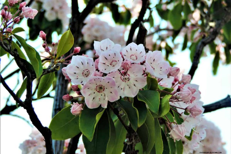Mountain Laurel (Kalmia latifolia) shrubs grow some of the most shockingly beautiful flowers in the world. These cup-shaped flowers are typically seen in white, pink, or red with patterns that burst with color. These plants can grow in zones 4-9 and can get anywhere from 3 to 6 feet tall. These shrubs require normal watering and good, acidic soil. They don't do well in clay or sand.