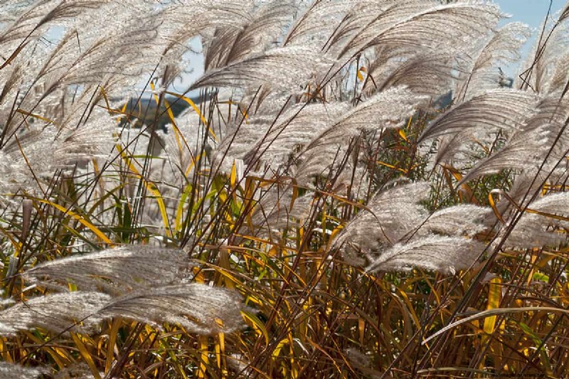 Japanese Silver Grass (Miscanthus sacchariflorus) is made up of extraordinarily long blades of grass that resemble a shaggy hairstyle. The green blades are typically so long they flop over at the top, forming a round shrub. They are known to spread wildly, so as you can imagine there is hardly any upkeep because of their resilience. Just plant them in zone 5 to 9 in good soil and water them regularly.