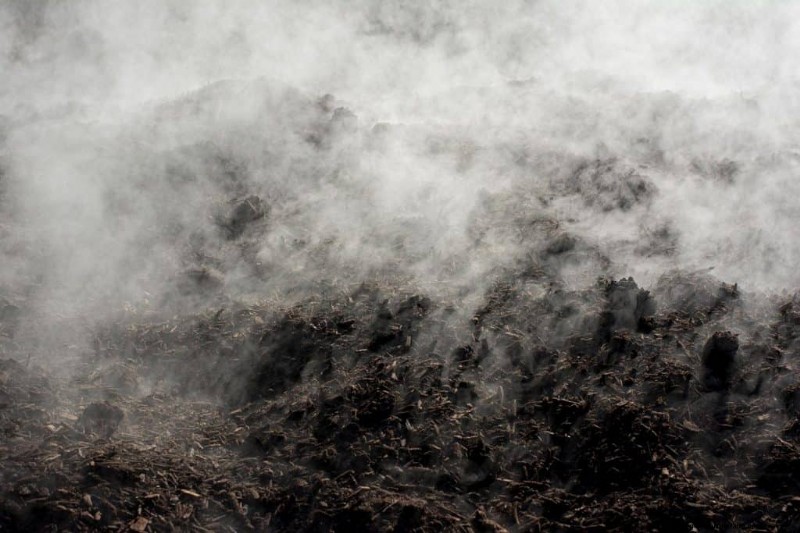 You can use a soil and compost thermometer to check the temperature of your pile. You can also tell if it's hot enough by disturbing the surface matter. Doing so will release steam when the contents are hot enough.