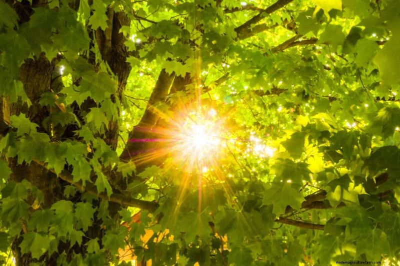 Some maple trees exhibit growth patterns that include very shallow roots and a very thick canopy. When present, the shallow roots not only have far-reaching roots but also small hairlike roots that rise all the way to the surface. It is partially this all-out rooting strategy that allows the canopies of maple trees to grow abundant leaves that blot out the sun.