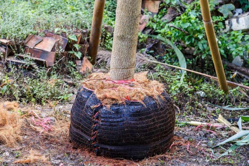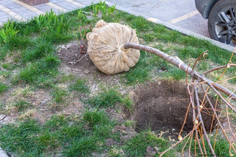Digging up a tree with its root ball and wrapping it in burlap is not always an easy job. This is primarily due to the physical effort needed for the digging and the movement of the weight. If you are up for the challenge, follow these steps: