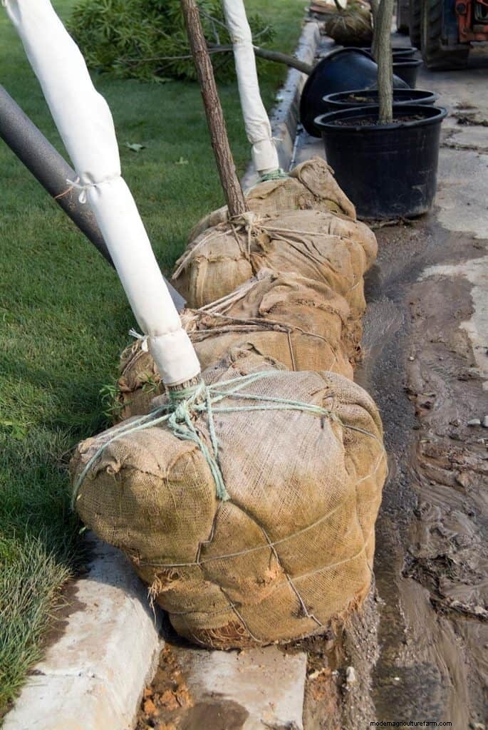 - Once have a balled and burlapped tree, then get it into a wheelbarrow or cart for transportation
