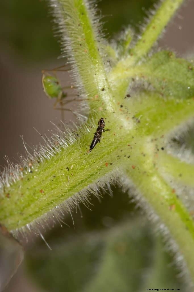 Thrips are predators of red spider mites; however, they should not be introduced into a garden to control the population of the red spider mite because they too are garden destroyers. Not only do they eat leaves and destroy crops, but they are a huge transporter of plant viruses such as impatiens necrotic spot virus, which attacks many different plant types.