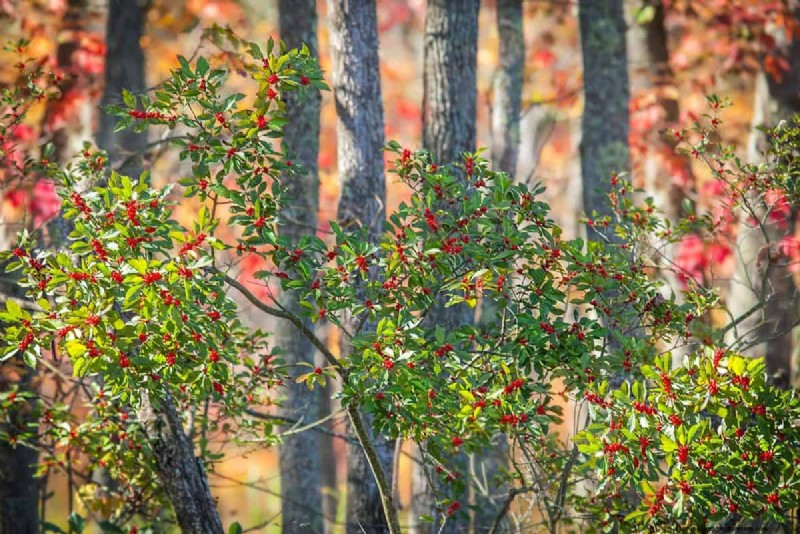 The winterberry or Winterberry Holly is a deciduous tree. It has thin, gray-brown bark and can grow between 10 and 15 feet tall. Winterberry plants have red berries with a black dot on them. The berries are a food source for birds. However, the berries and leaves are toxic to humans.
