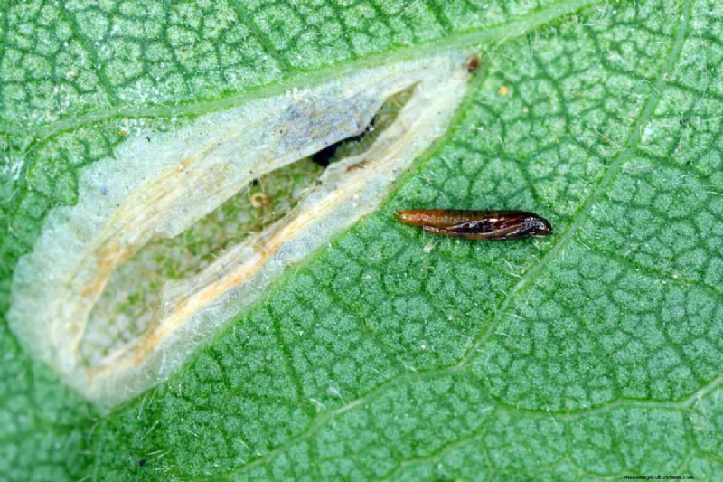 Over time, the larvae develop into pupae. After the pupal stage ends, the leaf miner emerges as an adult and lays eggs, starting the cycle again.