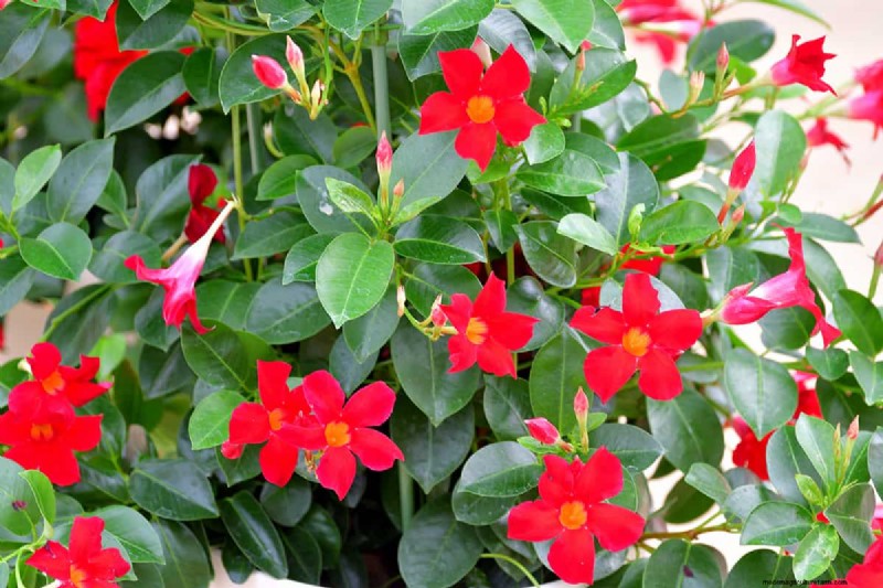 Mandevilla is a climbing plant, perfect to place in patios, arches, and pergolas.