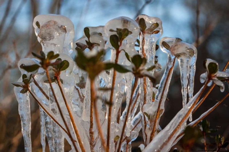 Ice crystals freeze the cells of the plant. Then, the ice expands and will burst the plant parts when the temperatures are too low. The freezing also dehydrates the plant, thus preventing the nutrients from reaching the plant tissues.