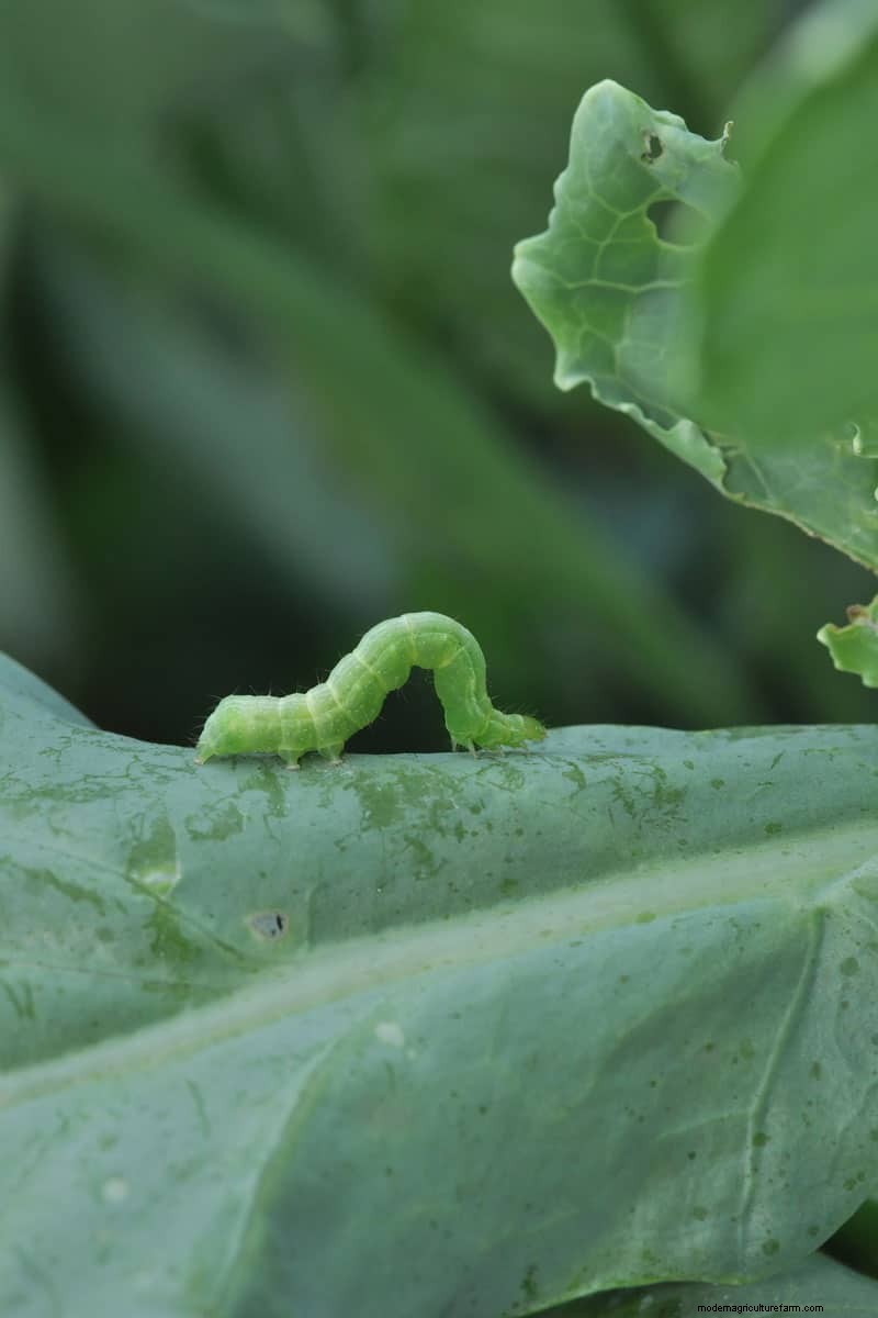 Cabbage loopers are moths that start as green larvae/caterpillars. They are smooth-skinned with a few long bristles that grow on their backs. They have two pairs of leg-like appendages on their fifth and sixth abdominal segments.