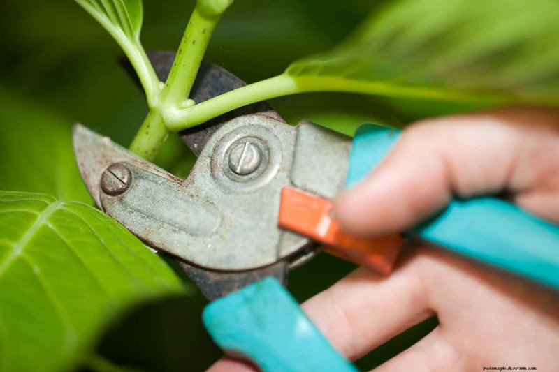 - Cut 6 inches from one of the stems using scissors just right above the leaf node where the new roots will grow.