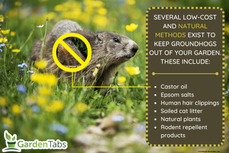 Several low-cost and natural methods exist to keep groundhogs out of your garden. These include: