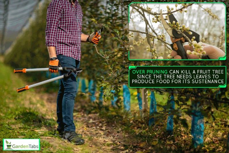 Over pruning can kill a fruit tree since it needs leaves to produce food and for its overall health. So, the lack of foliage can deplete nutrients and starve the tree.