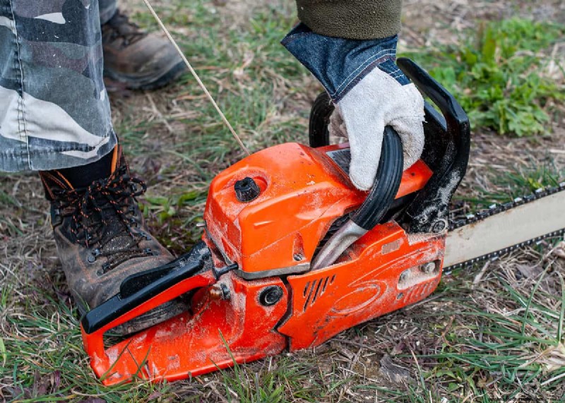 Start by setting your chainsaw to choke. When your chainsaw is set to choke, more fuel is allowed in the combustion chamber, making starting the engine easier. A chainsaw can't stay running on choke, however, because there is too much fuel to sustain combustion.