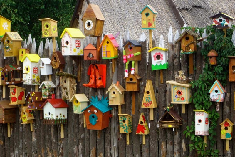 Some homeowners turn their fences into a condo for birds with multiple birdhouses or hang garden decorations or garden tools over the gaps. This works well if the gaps are not even from top to bottom. The decorations can be used over the larger parts to break up the view.