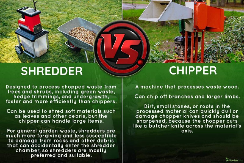 A shredder can be used to shred soft materials such as leaves and other debris, but the chipper can handle large items.