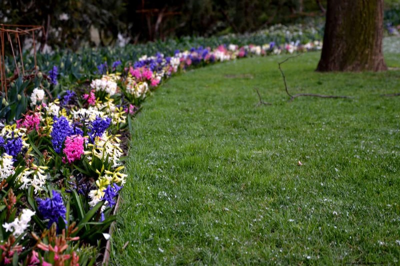 Stones and bricks are popular edging options. They can be used to create a minimalist effect while providing a neat border. They are also ideal if you want a wider border between the grass and the flower beds.
